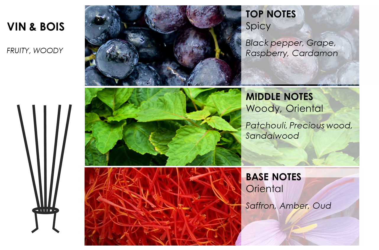 juodieji pipirai (black pepper), vynuogės (grape), avietės (raspberry), kardamonas (cardamom)